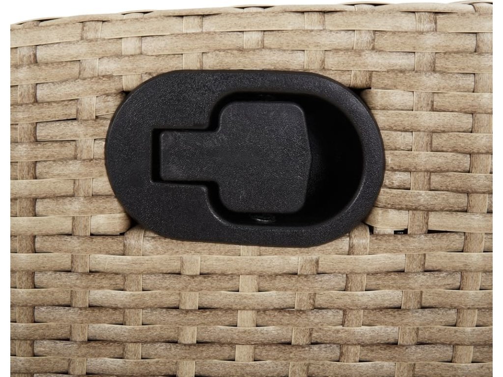 - Odolný materiál: PE ratan neboli polyratan je pevný syntetický materiál s nízkými nároky na údržbu, který vypadá jako přírodní ratan. Je lehký, snadno se čistí a běžně se používá pro venkovní nábytek díky své dlouhé životnosti a odolnosti vůči povětrnostním vlivům.