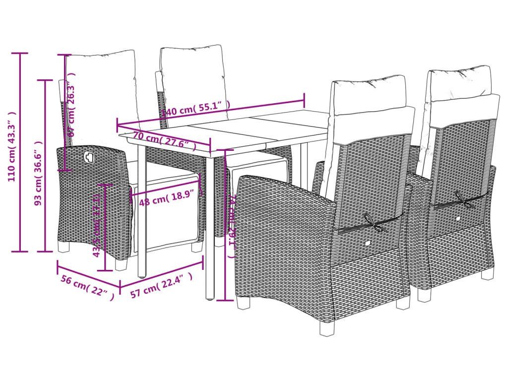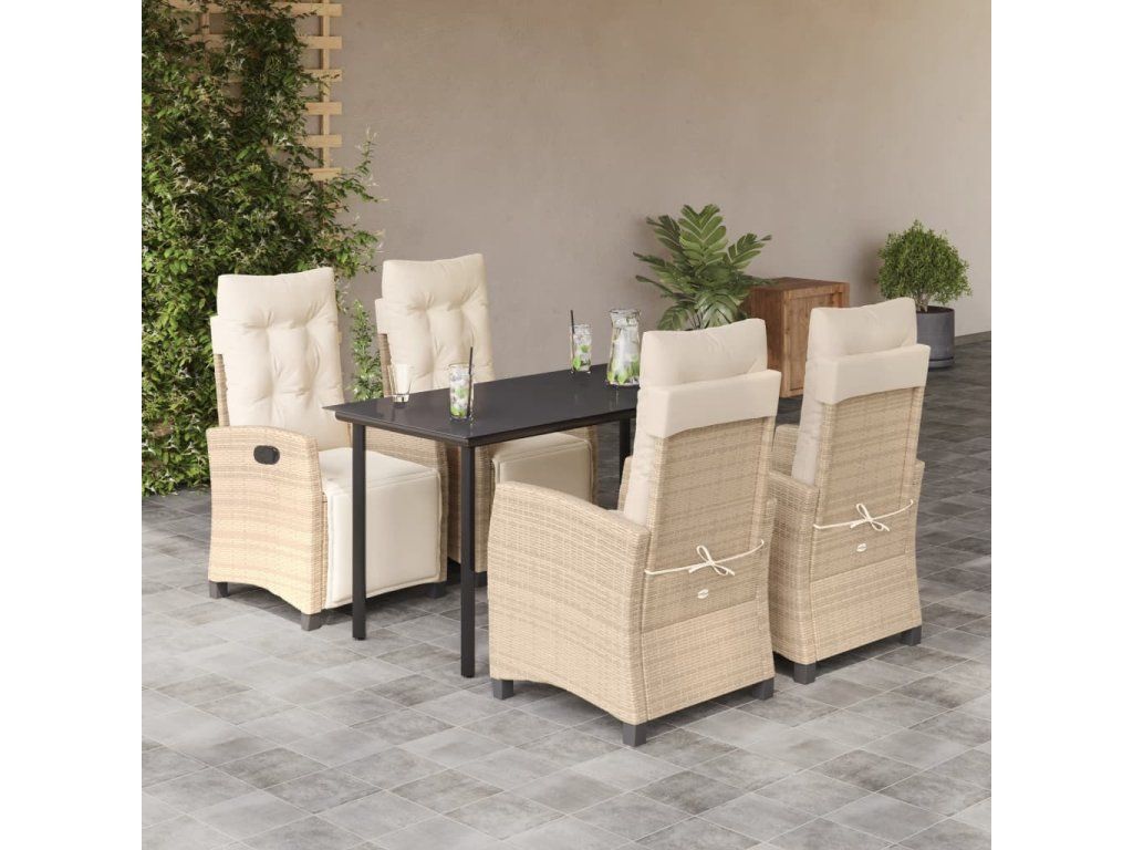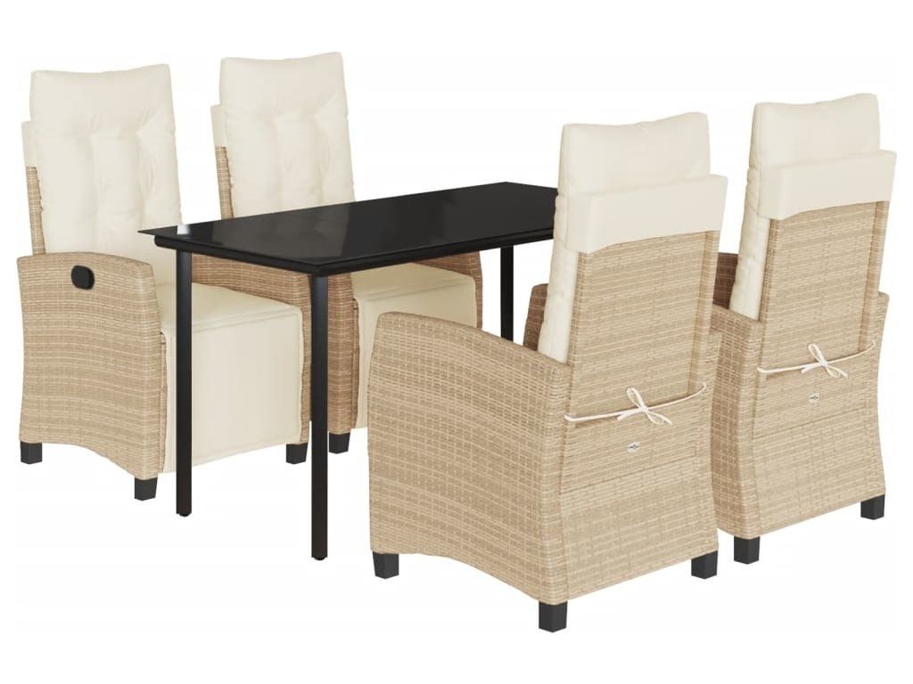 5dílný zahradní jídelní set s poduškami béžový polyratan [3213011]