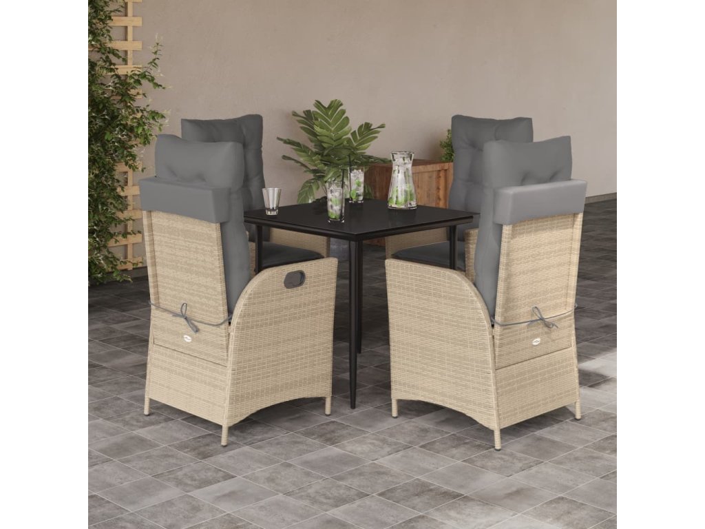 5dílný zahradní jídelní set s poduškami béžový polyratan [3213255]