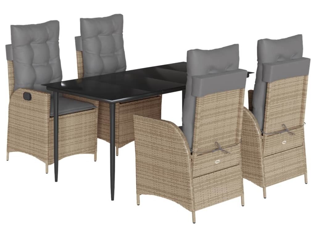 5dílný zahradní jídelní set s poduškami béžový polyratan [3213258]
