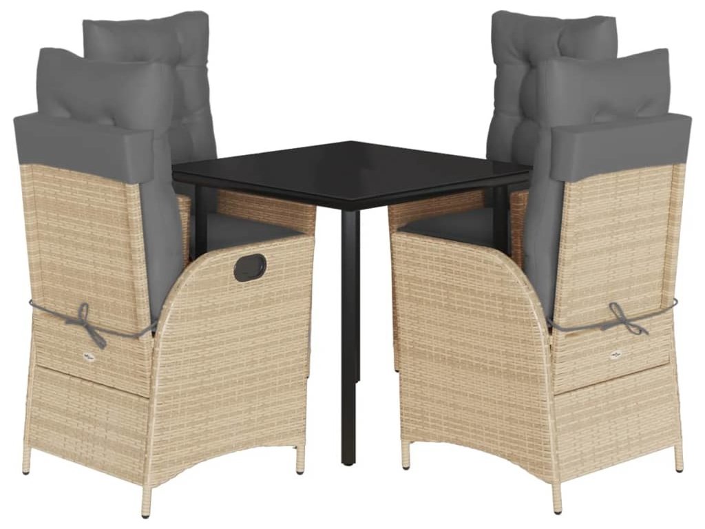 5dílný zahradní jídelní set s poduškami béžový polyratan [3213266]