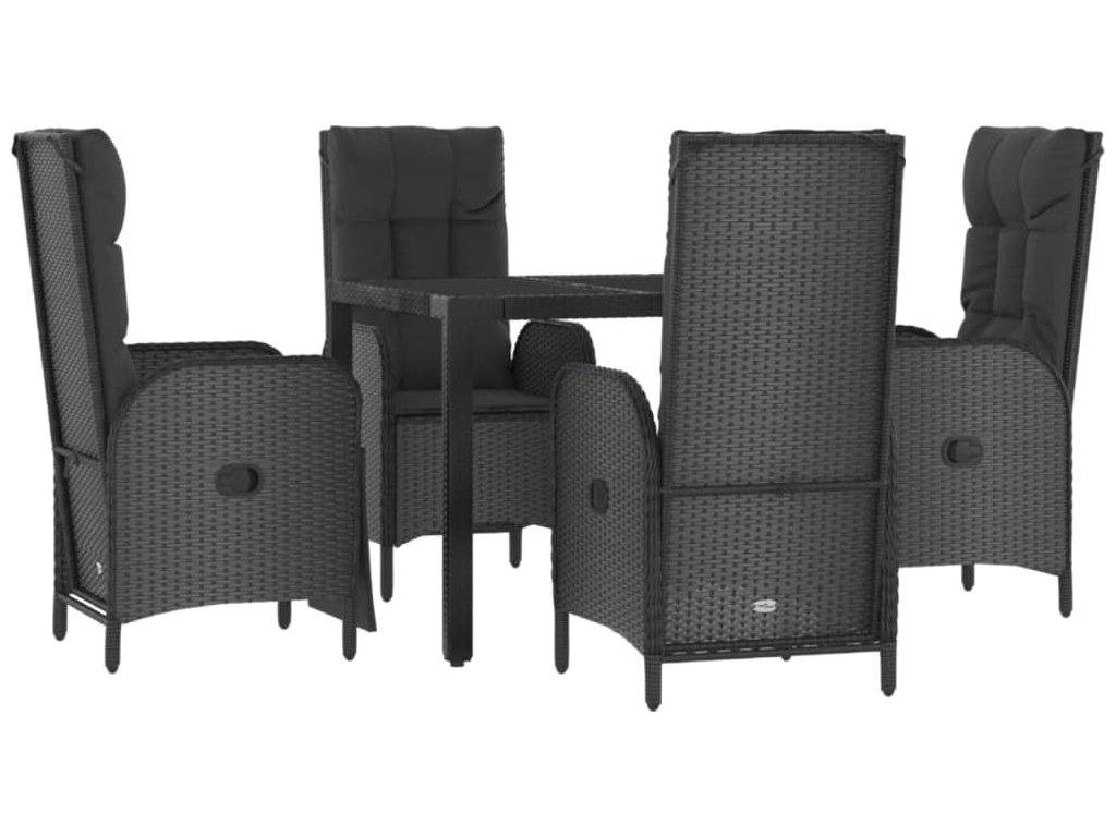 5dílný zahradní jídelní set s poduškami černý polyratan [3185065]