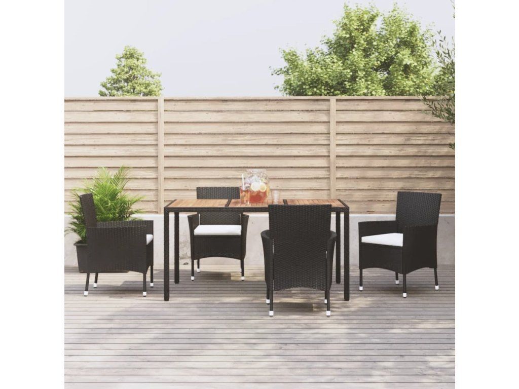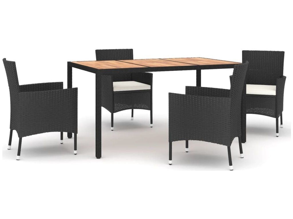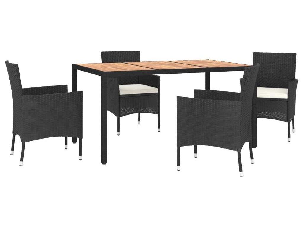 5dílný zahradní jídelní set s poduškami černý polyratan [3187390]