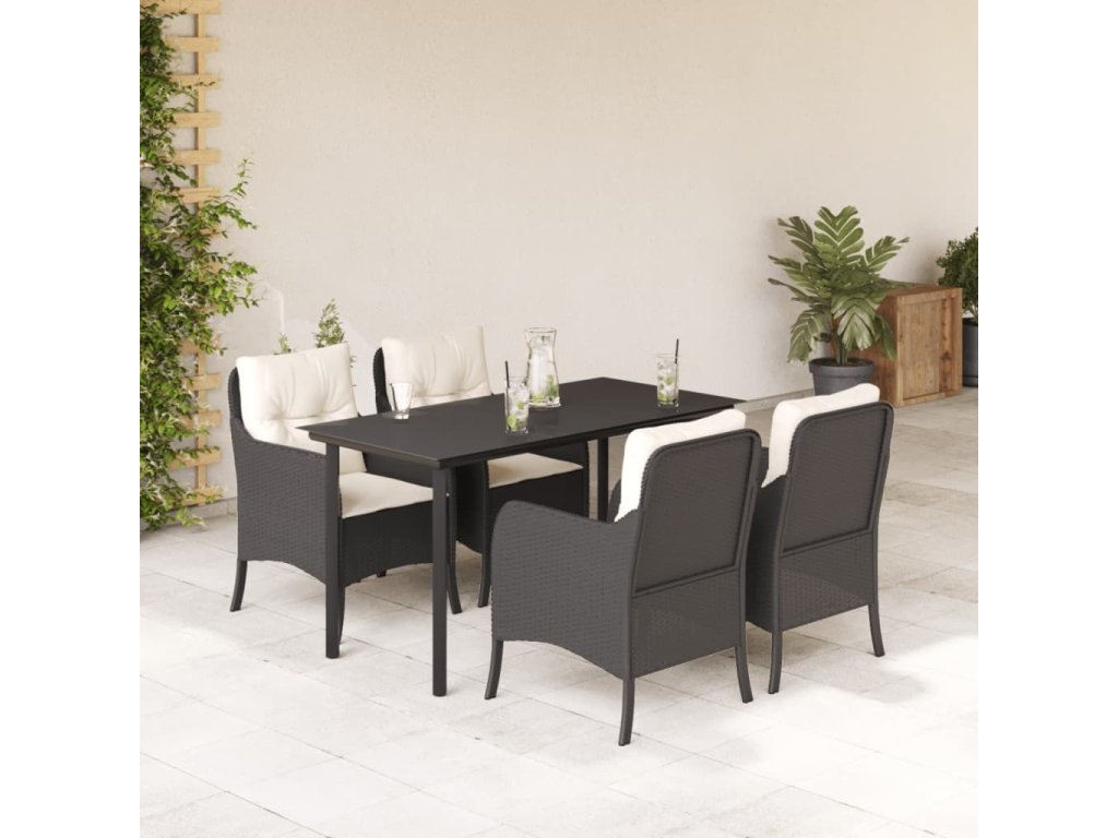 5dílný zahradní jídelní set s poduškami černý polyratan [3211915]