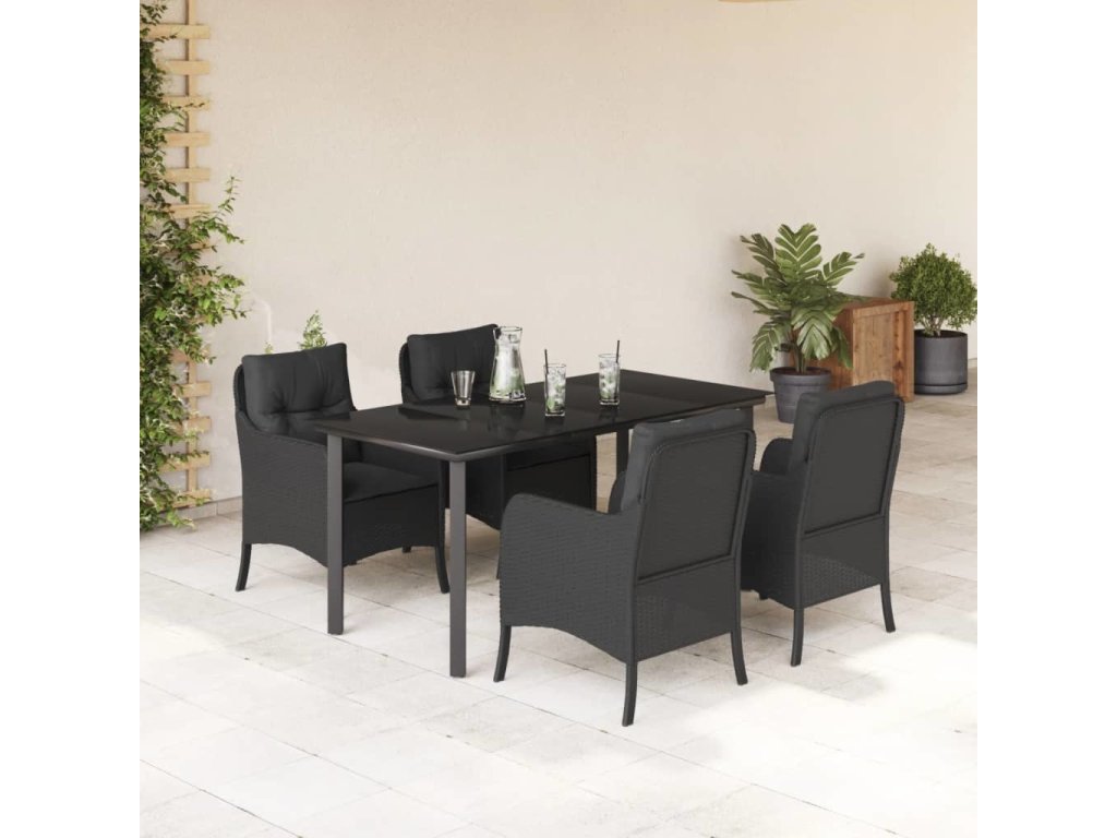 5dílný zahradní jídelní set s poduškami černý polyratan [3211930]