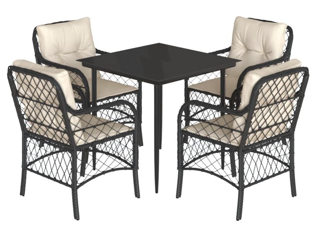 5dílný zahradní jídelní set s poduškami černý polyratan [3212083]