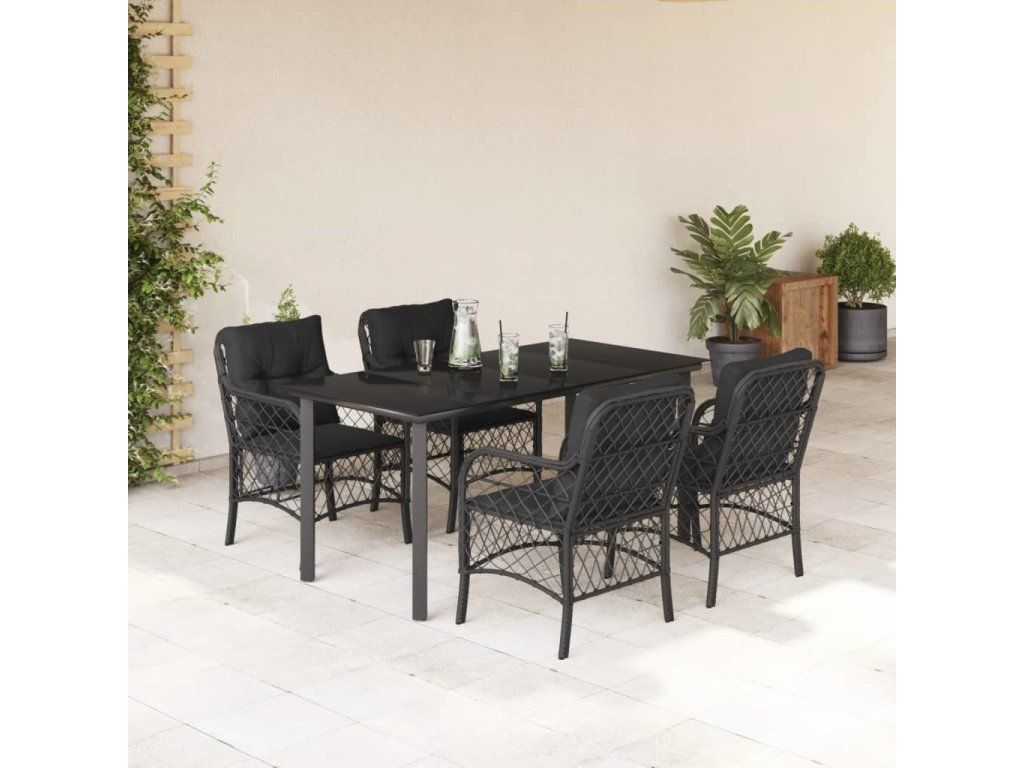 5dílný zahradní jídelní set s poduškami černý polyratan [3212106]