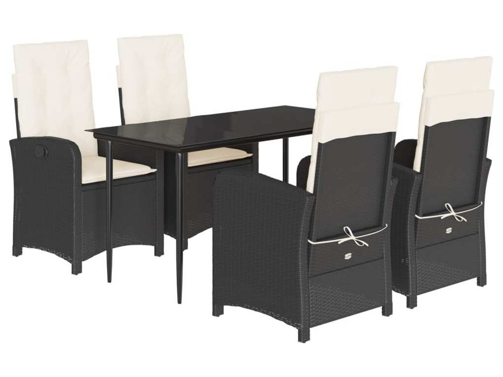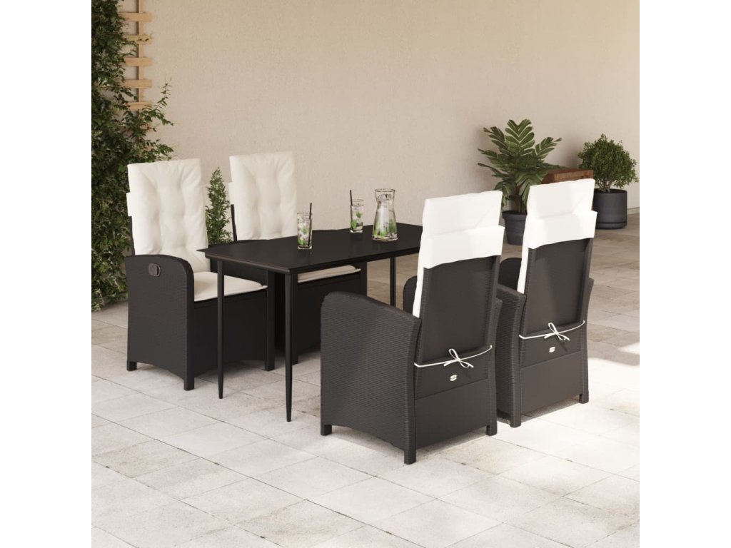 5dílný zahradní jídelní set s poduškami černý polyratan [3212293]