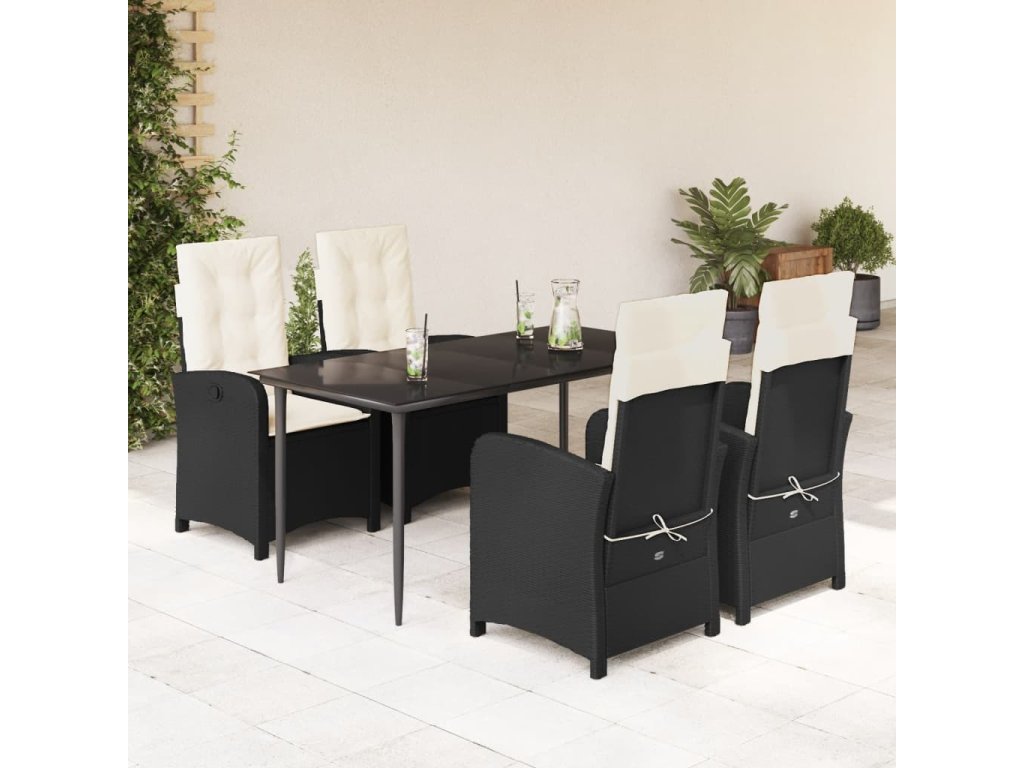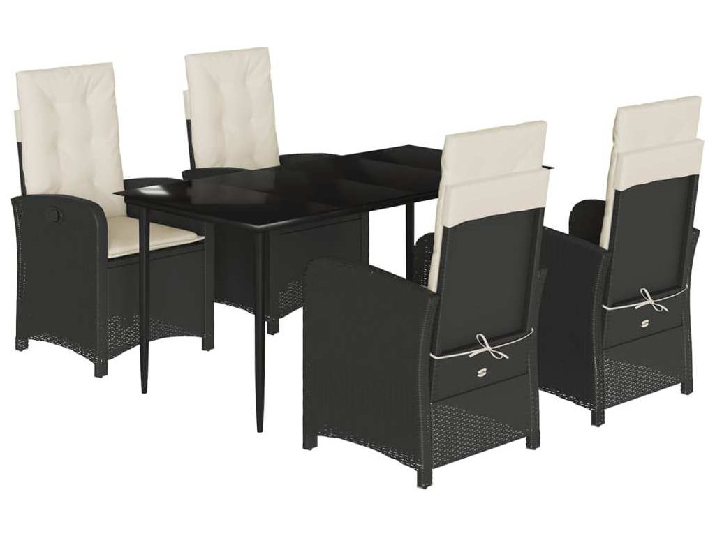 5dílný zahradní jídelní set s poduškami černý polyratan [3212294]