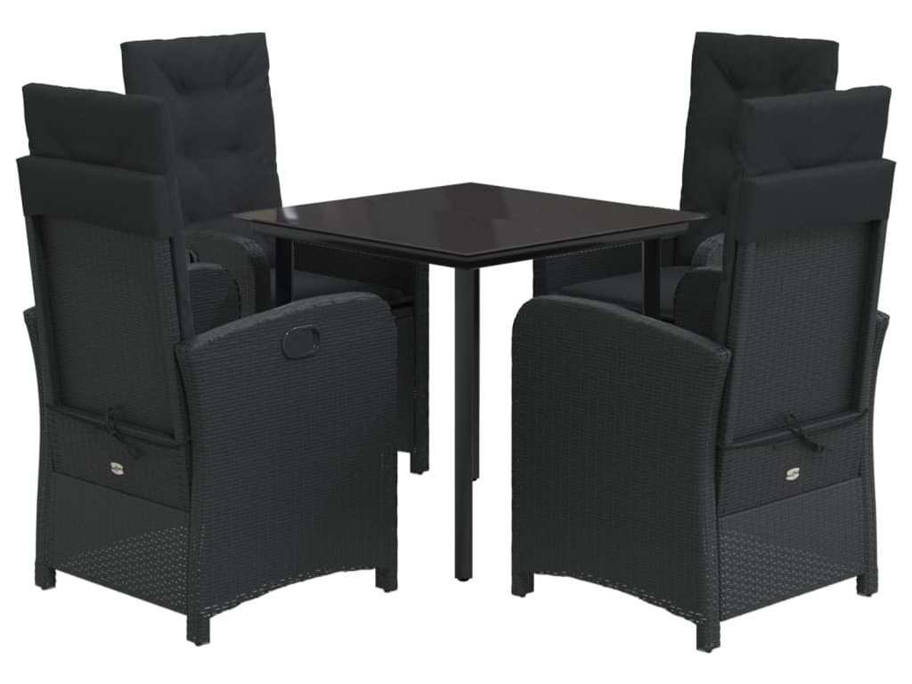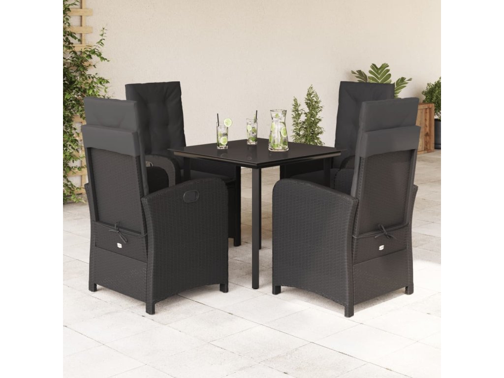 5dílný zahradní jídelní set s poduškami černý polyratan [3212321]