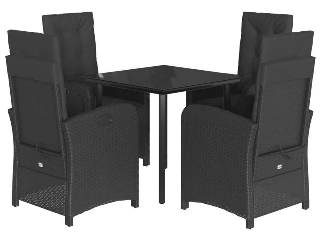 5dílný zahradní jídelní set s poduškami černý polyratan [3212322]