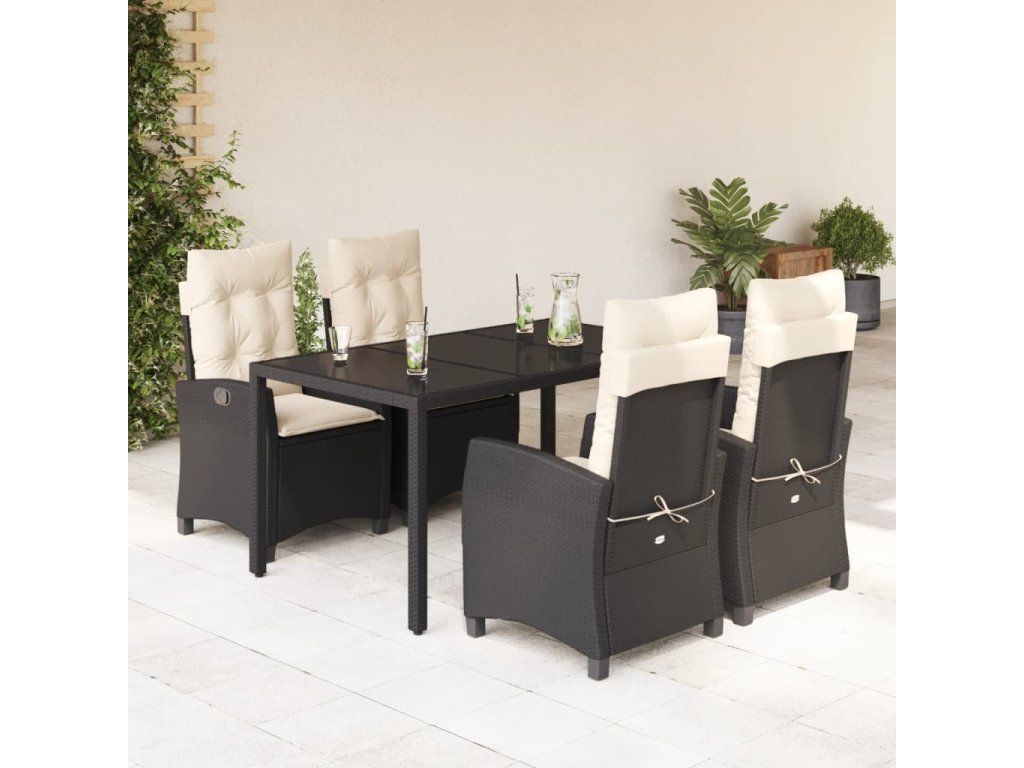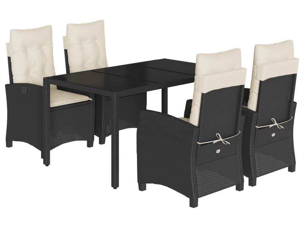 5dílný zahradní jídelní set s poduškami černý polyratan [3212629]