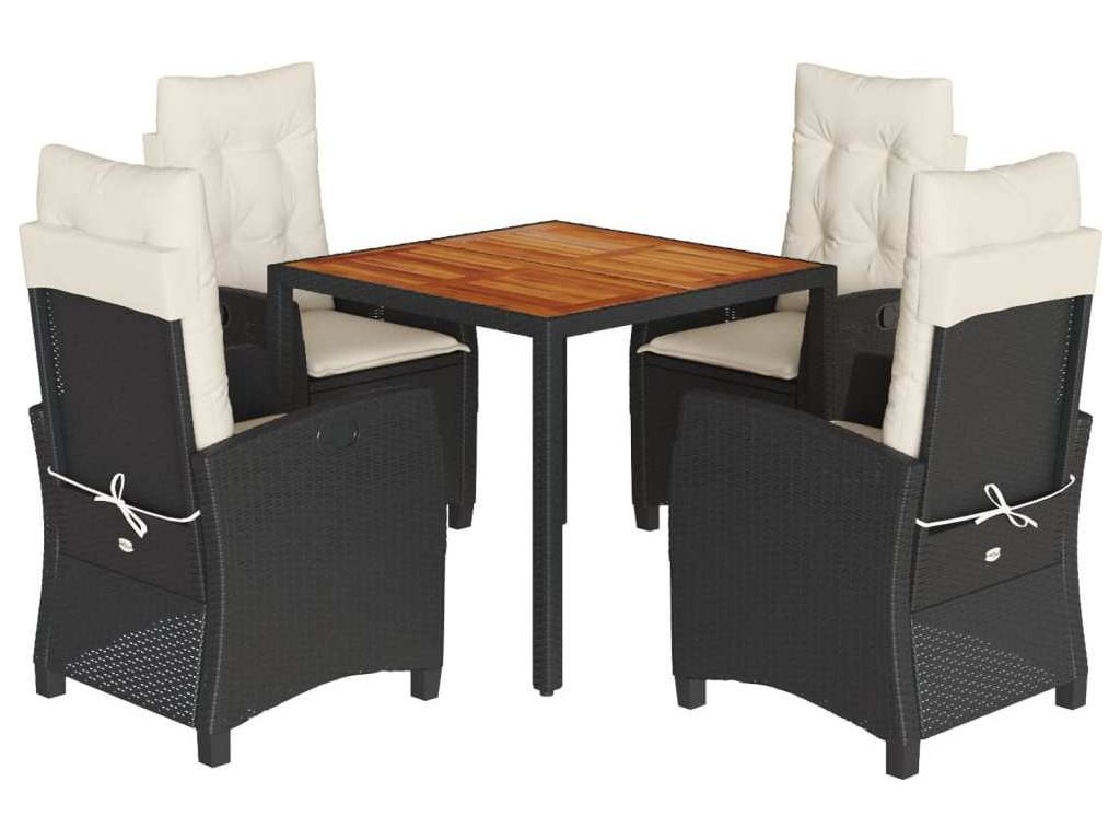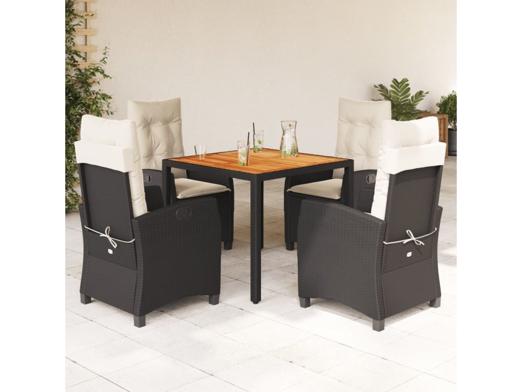 5dílný zahradní jídelní set s poduškami černý polyratan [3212654]