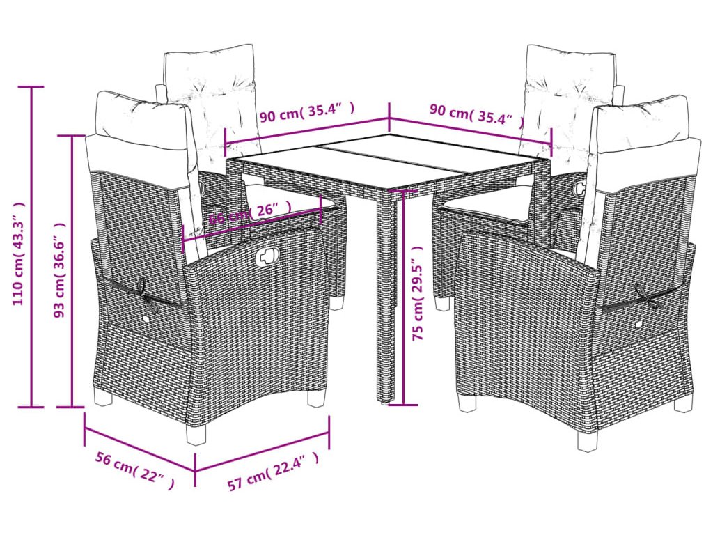 - Rozměry: 90 x 90 x 75 cm (D x Š x V)