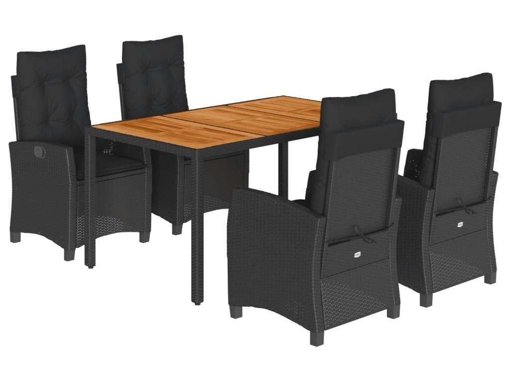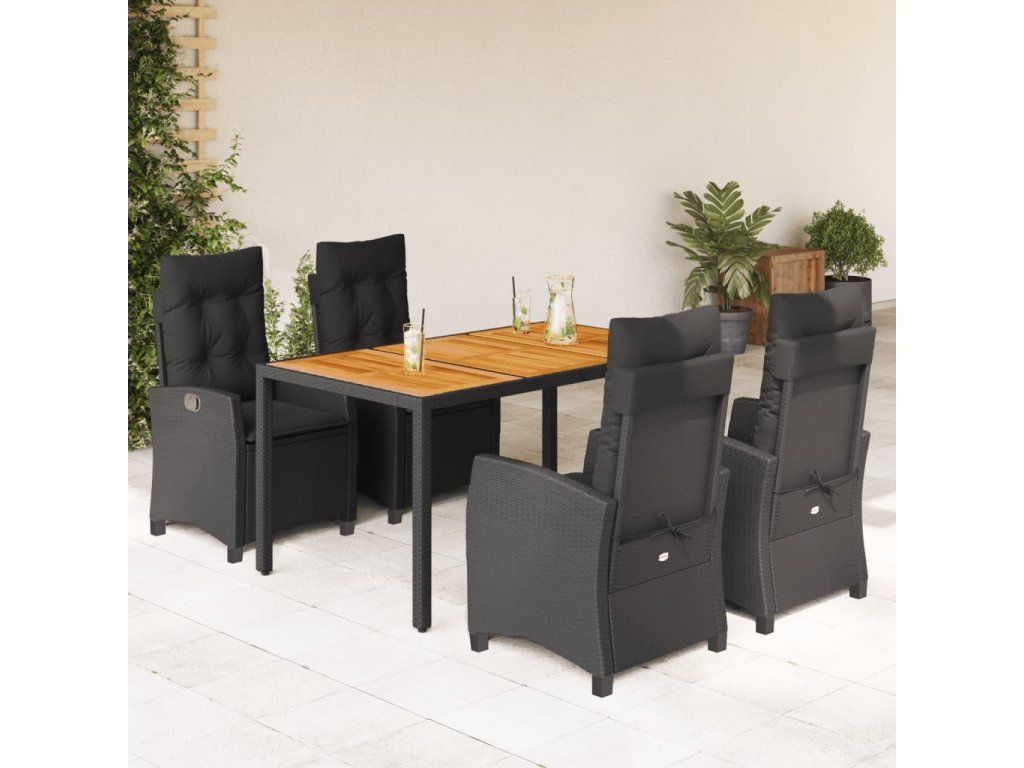 5dílný zahradní jídelní set s poduškami černý polyratan [3212665]