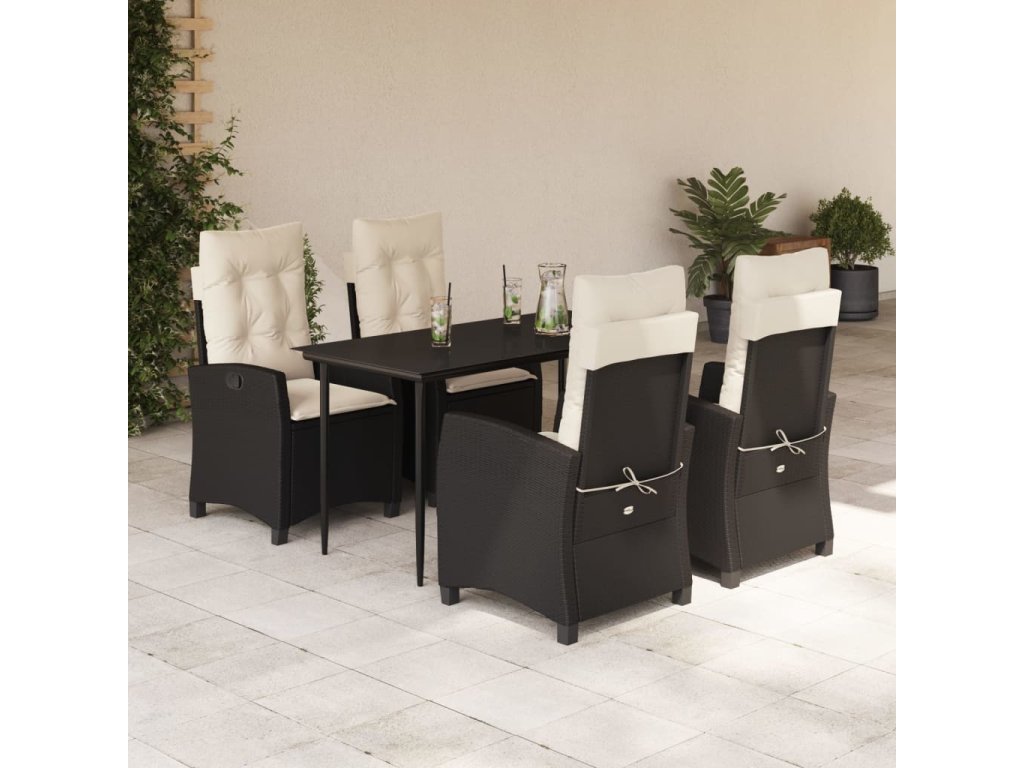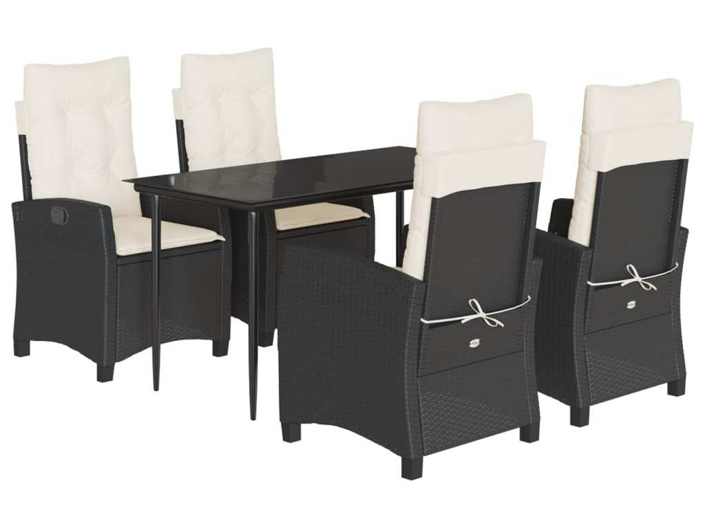 5dílný zahradní jídelní set s poduškami černý polyratan [3212725]