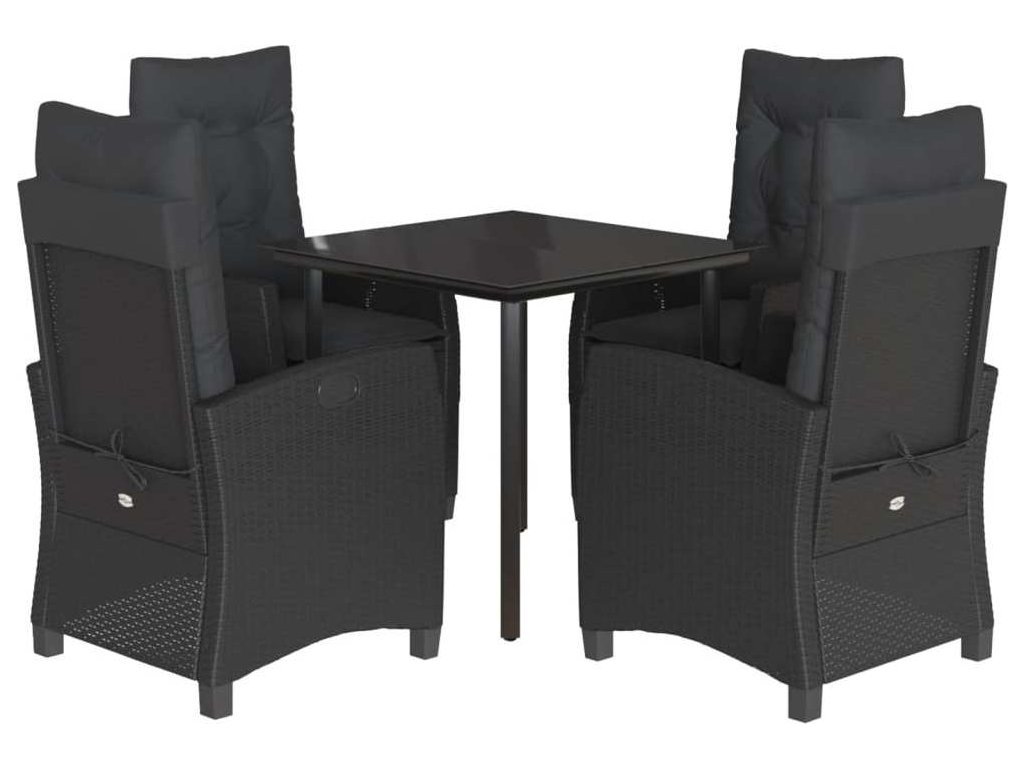 5dílný zahradní jídelní set s poduškami černý polyratan [3212753]