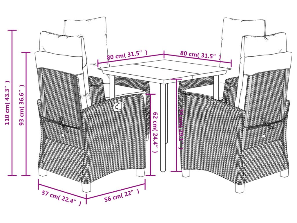 - Rozměry: 80 x 80 x 74 cm (D x Š x V)