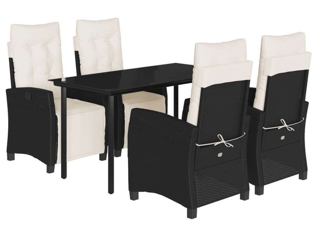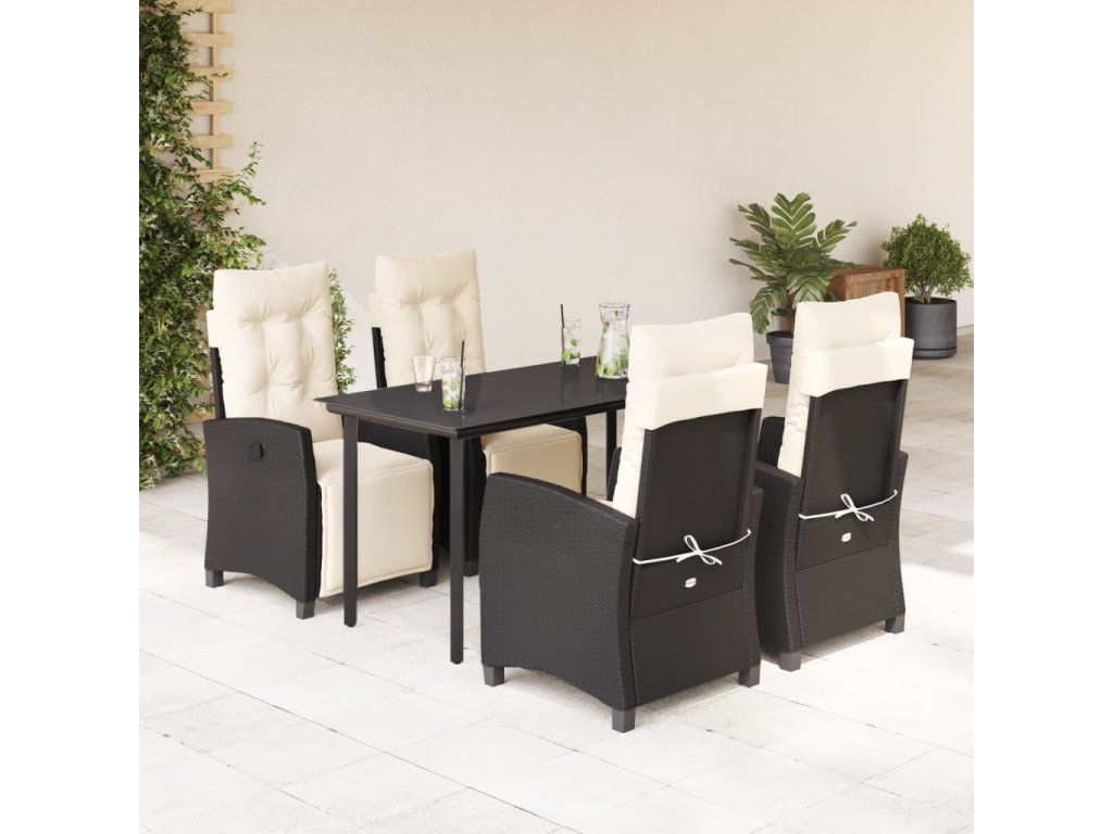 5dílný zahradní jídelní set s poduškami černý polyratan [3212955]
