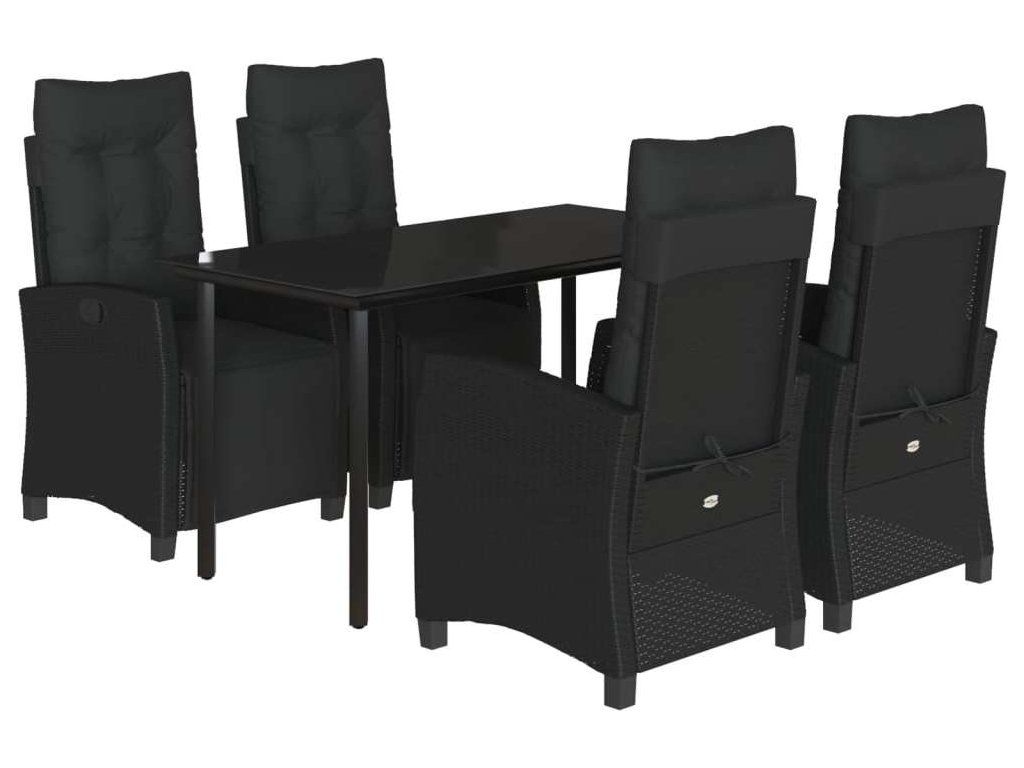 5dílný zahradní jídelní set s poduškami černý polyratan [3212969]