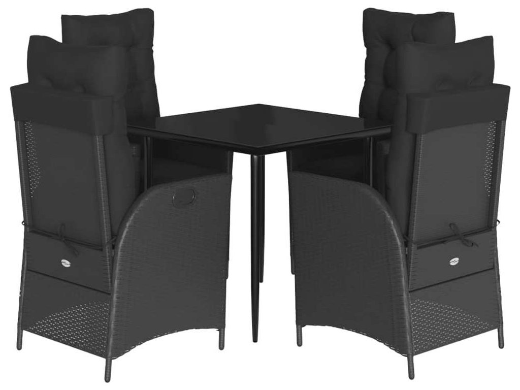 5dílný zahradní jídelní set s poduškami černý polyratan [3213176]