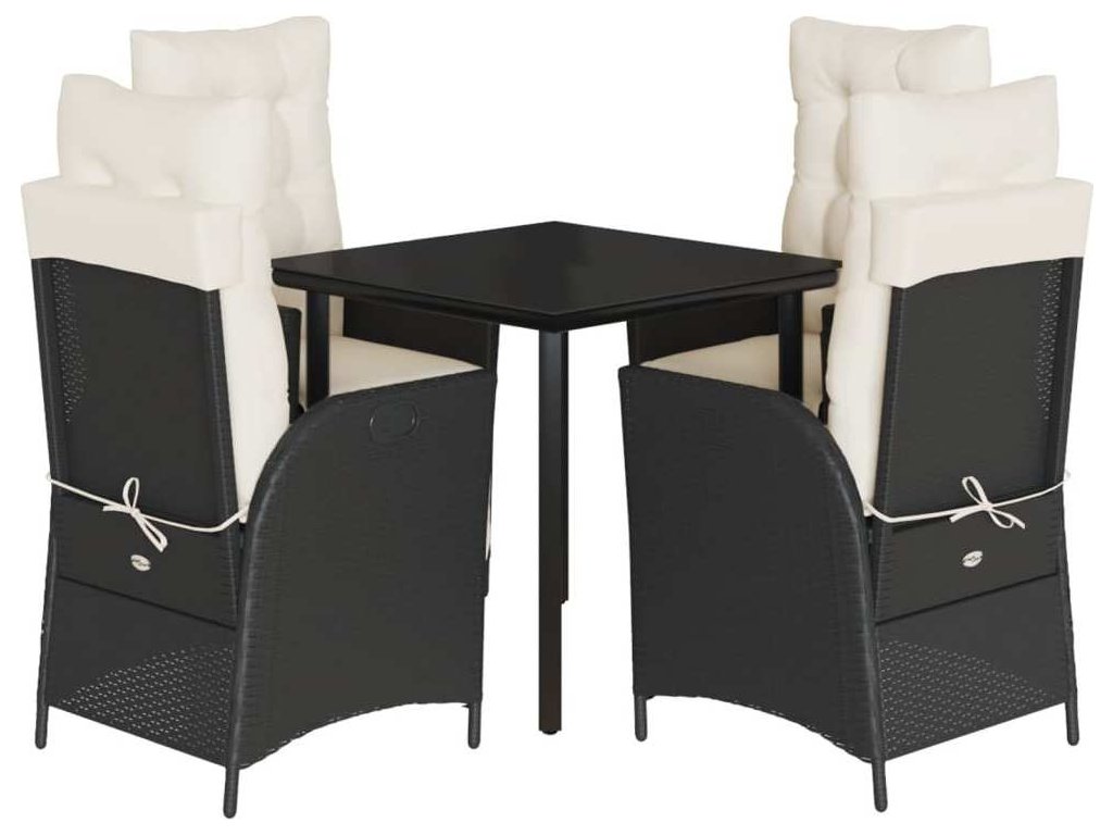5dílný zahradní jídelní set s poduškami černý polyratan [3213386]