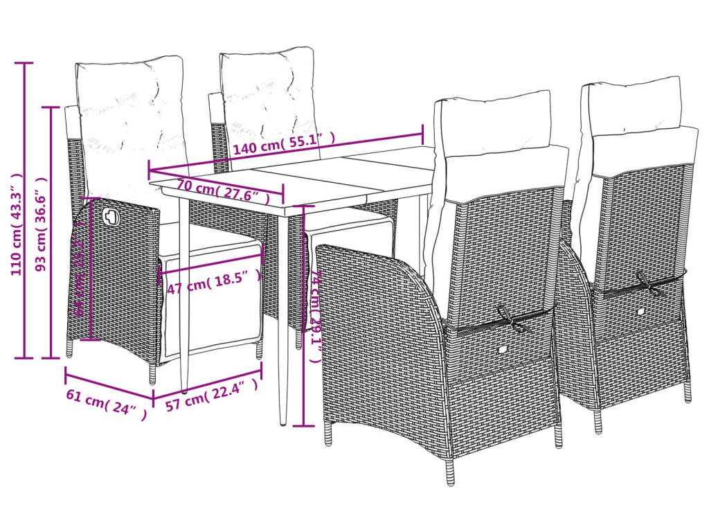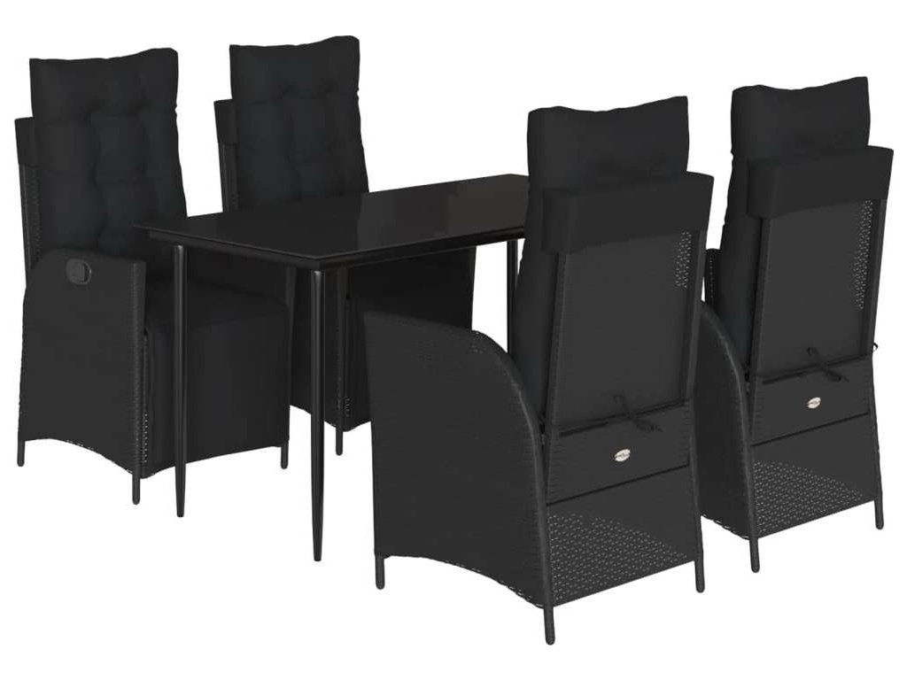 5dílný zahradní jídelní set s poduškami černý polyratan [3213394]