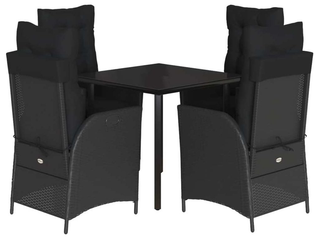 5dílný zahradní jídelní set s poduškami černý polyratan [3213400]