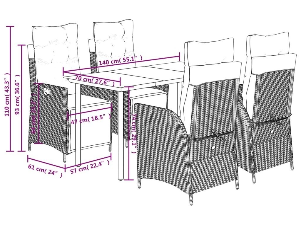 Tento zahradní jídelní set je skvělou volbou pro stolování pod širým nebem nebo jen tak pro odpočívání na zahradě, dvorku či terase.