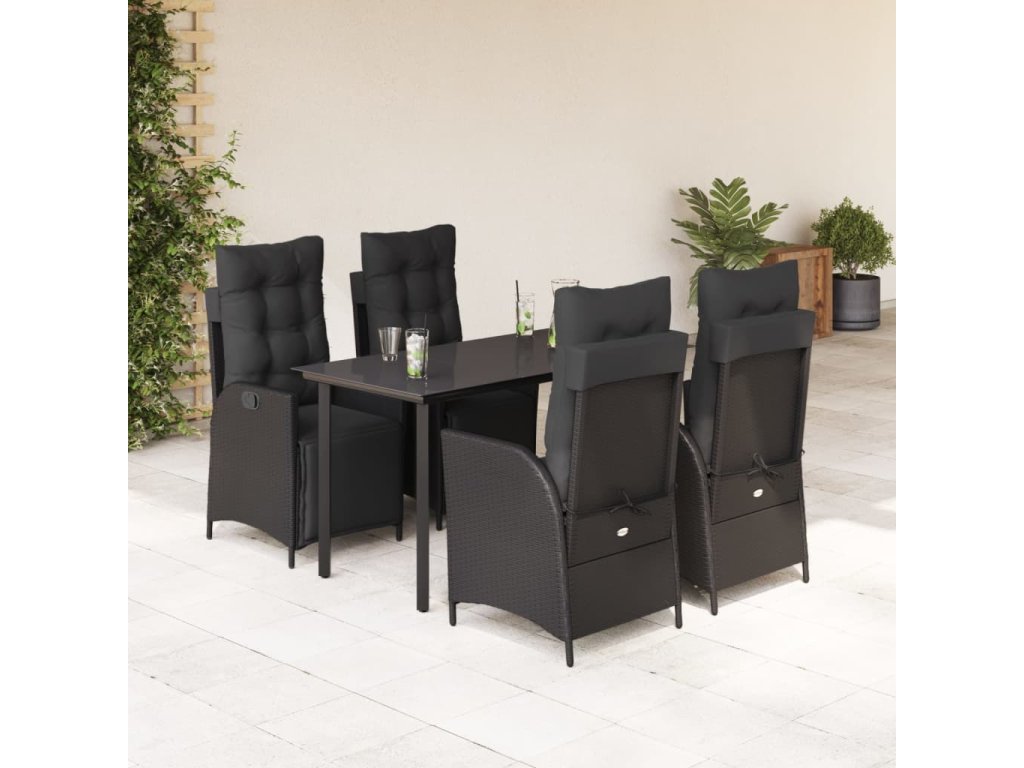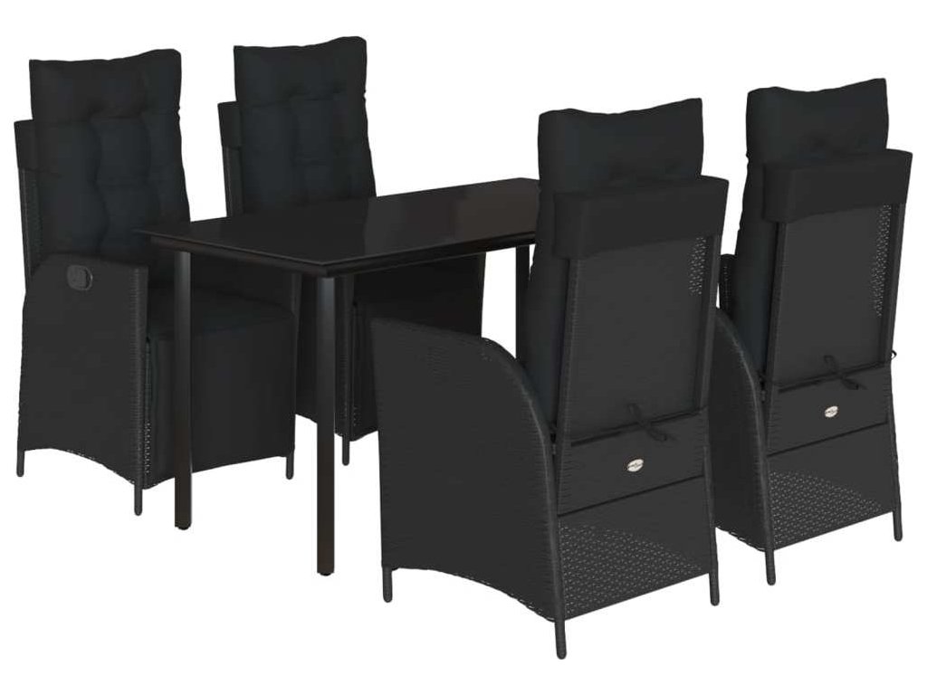 5dílný zahradní jídelní set s poduškami černý polyratan [3213401]