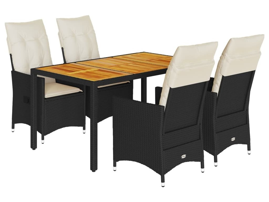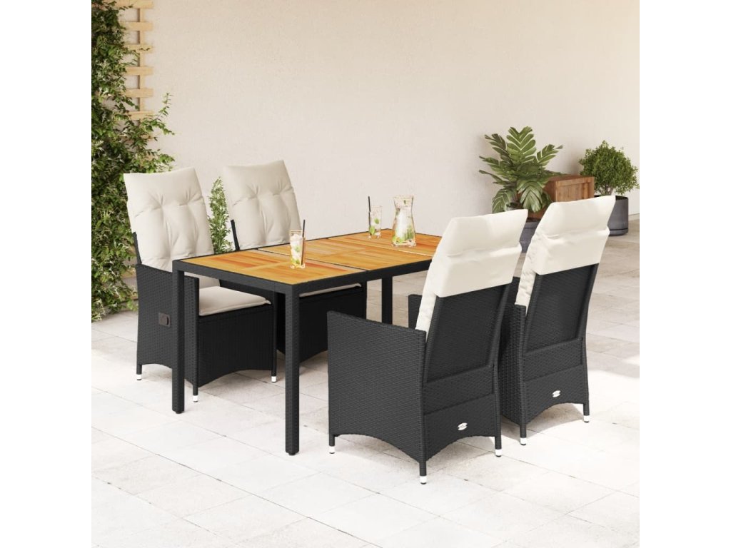5dílný zahradní jídelní set s poduškami černý polyratan [3276682]