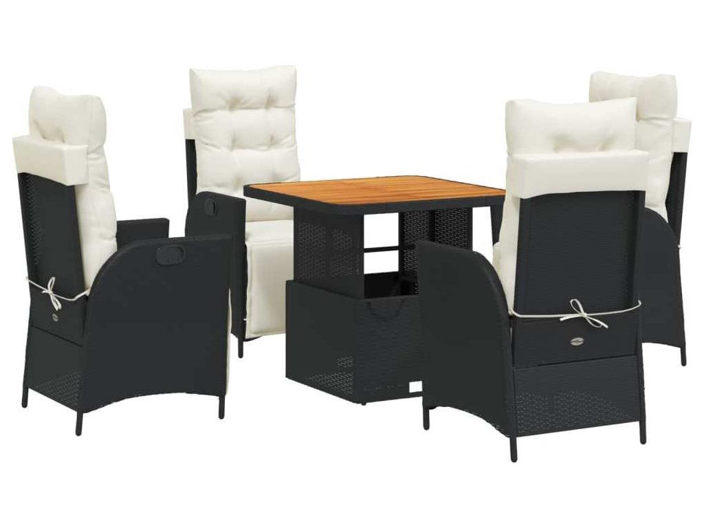 5dílný zahradní jídelní set s poduškami černý polyratan [3277436]