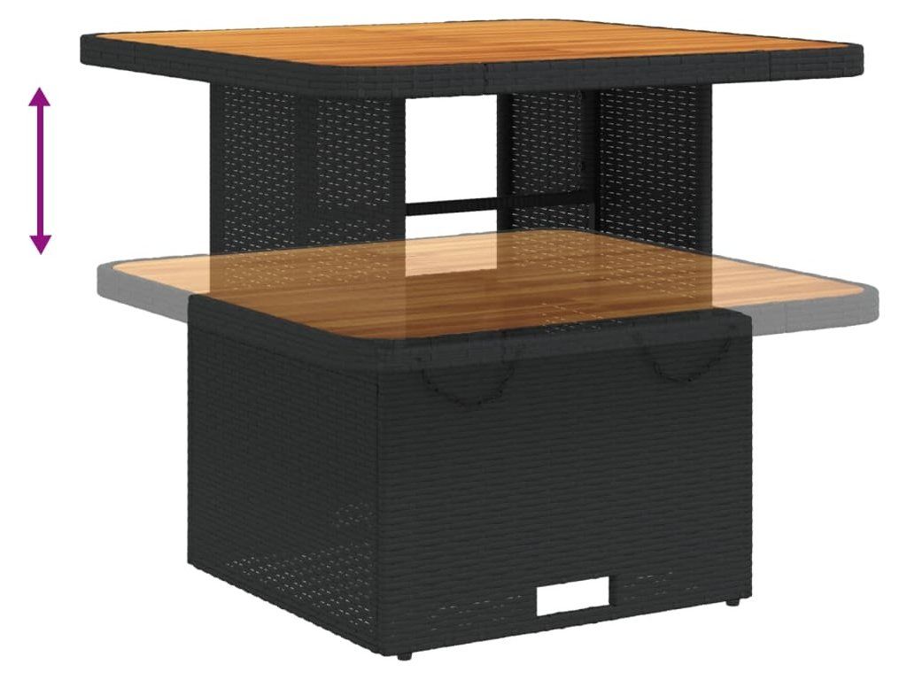 - Nastavitelná deska stolu: Stolní desku lze zvednout tak, aby stůl byl vyšší, takže jej můžete přeměnit z konferenčního stolku na jídelní. Skvěle se hodí pro návštěvy nebo pro stolování venku.