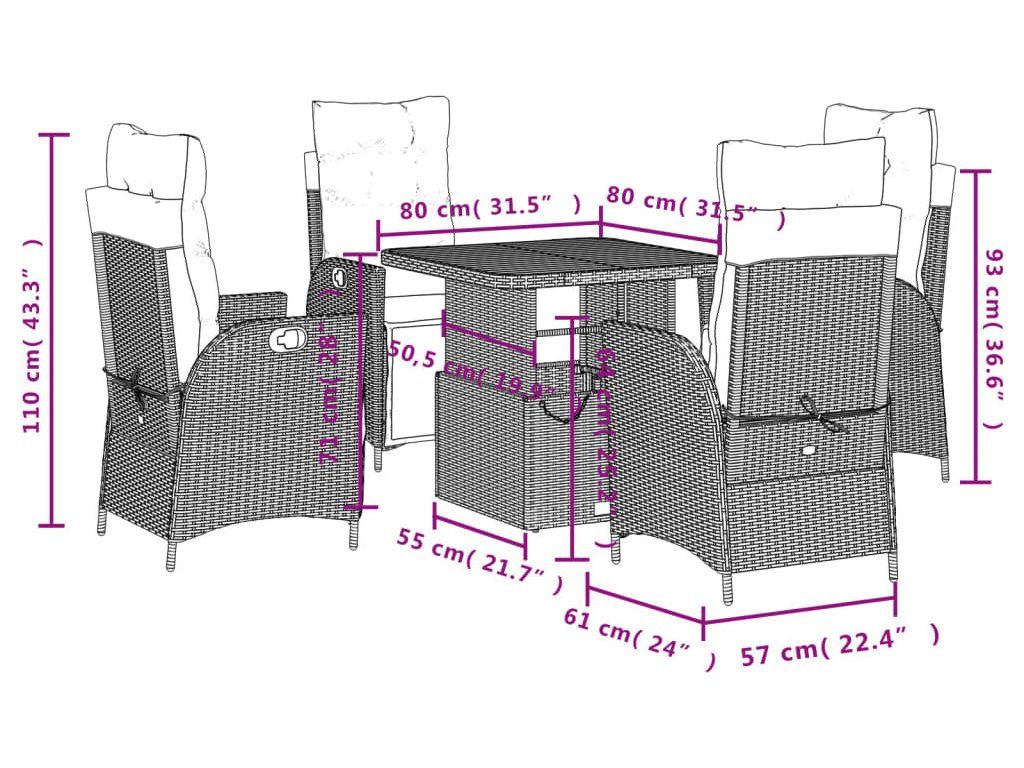 Tento zahradní jídelní set je skvělou volbou pro stolování pod širým nebem nebo jen tak pro odpočívání na zahradě, dvorku či terase.