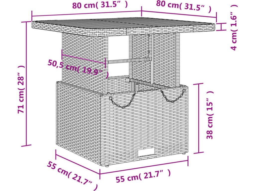- Rozměry stolu: 80 x 80 x 40/71 cm (D x Š x V)