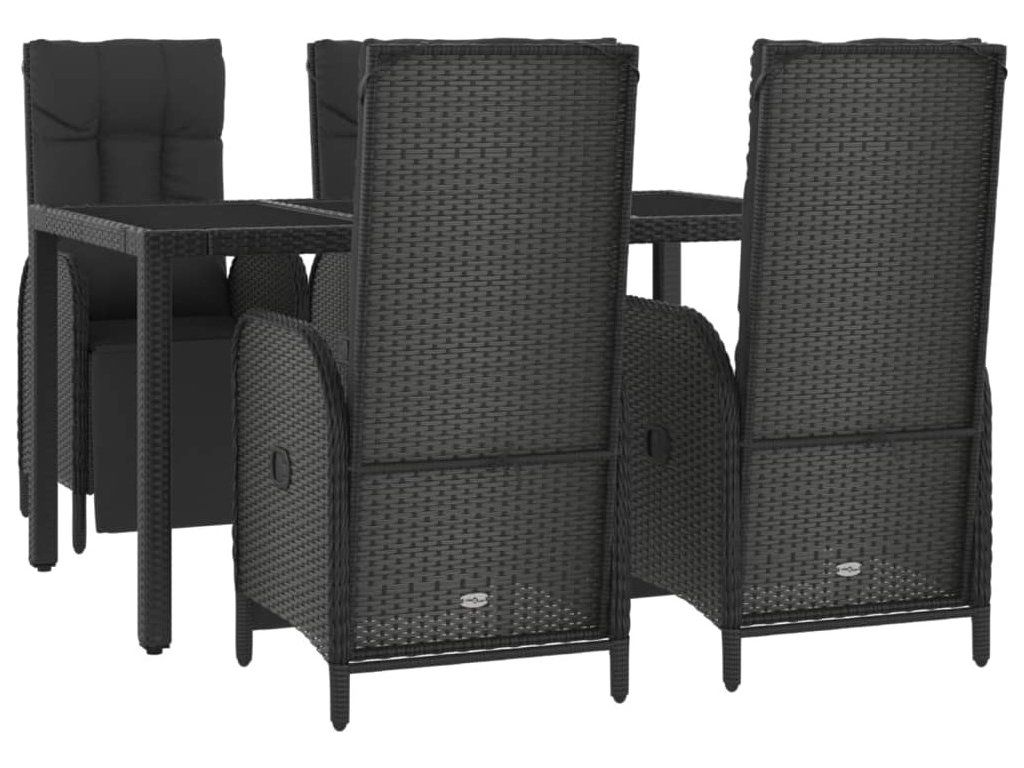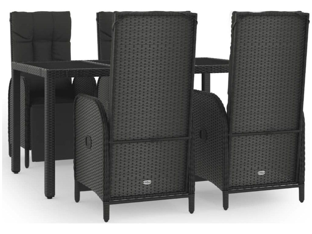 5dílný zahradní jídelní set s poduškami černý polyratan [3185061]