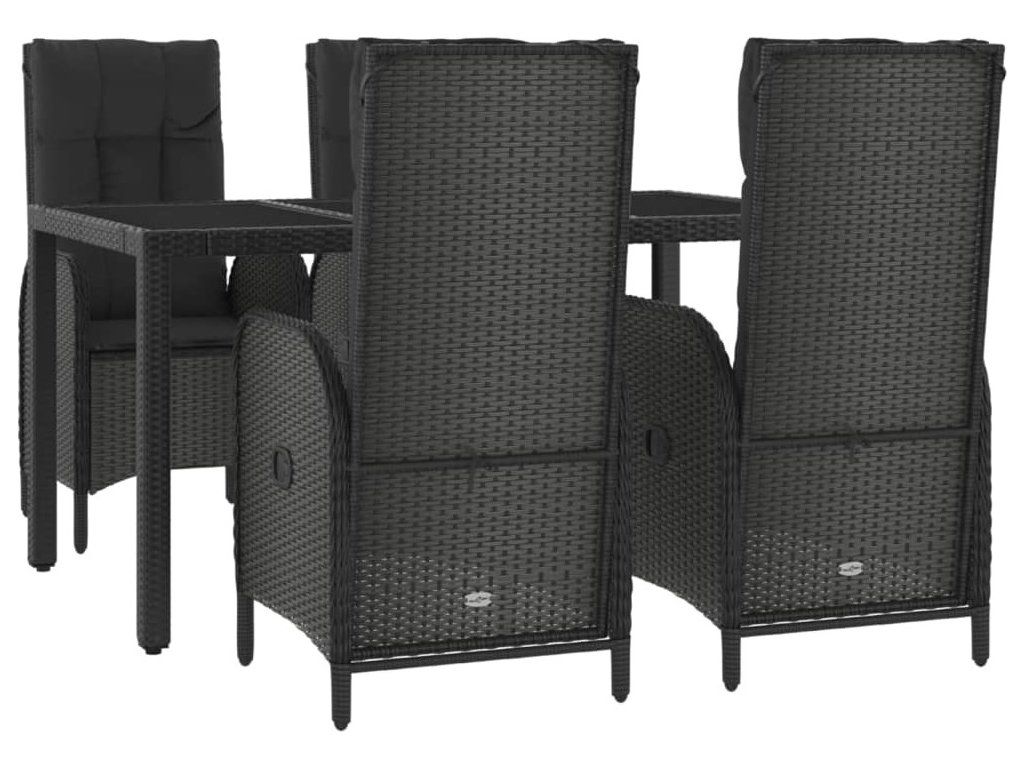 5dílný zahradní jídelní set s poduškami černý polyratan [3185055]