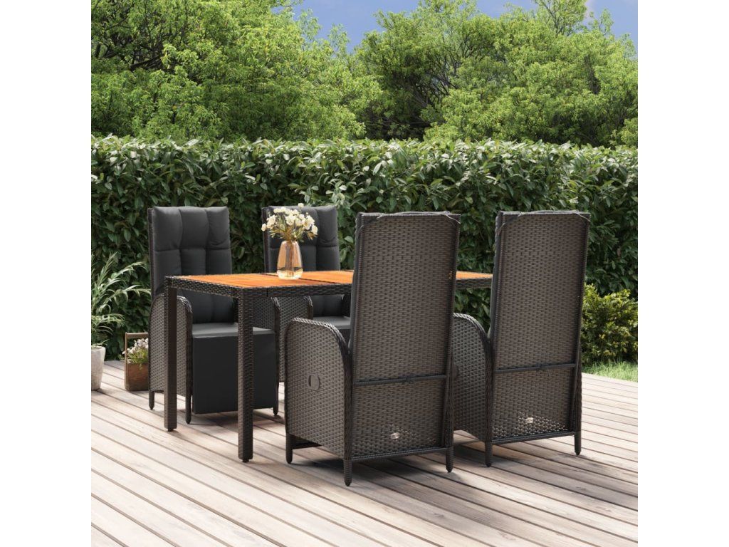 5dílný zahradní jídelní set s poduškami černý polyratan [3185076]