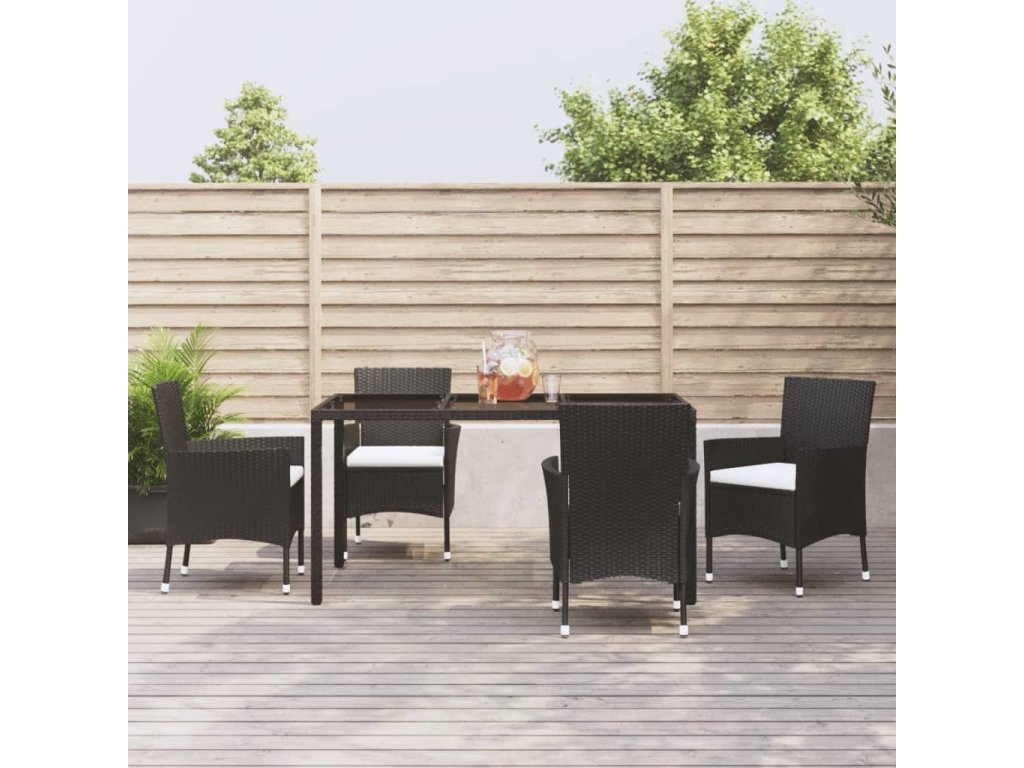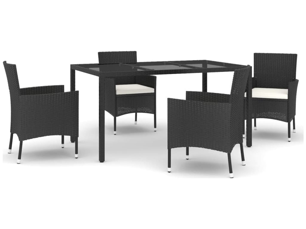 5dílný zahradní jídelní set s poduškami černý polyratan [3187318]