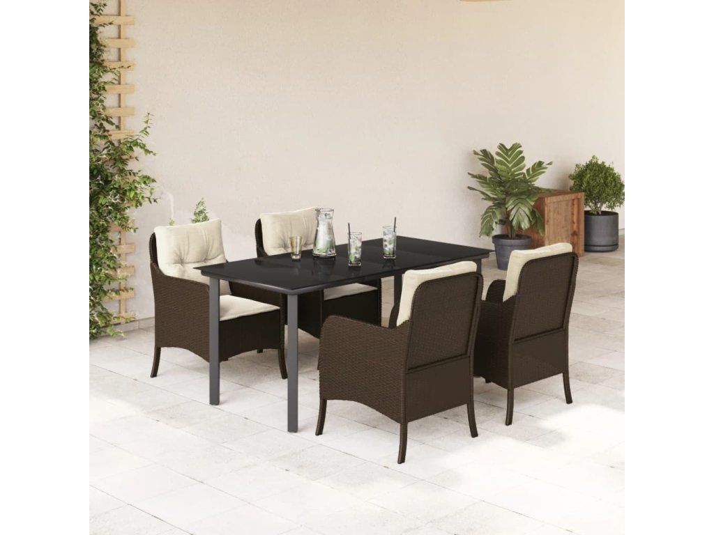 5dílný zahradní jídelní set s poduškami hnědý polyratan [3211944]