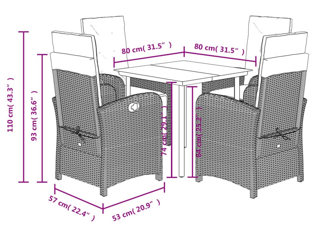 - Rozměry: 80 x 80 x 74 cm (Š x H x V)