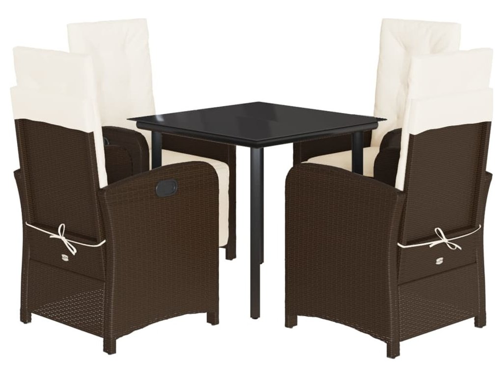 5dílný zahradní jídelní set s poduškami hnědý polyratan [3212342]