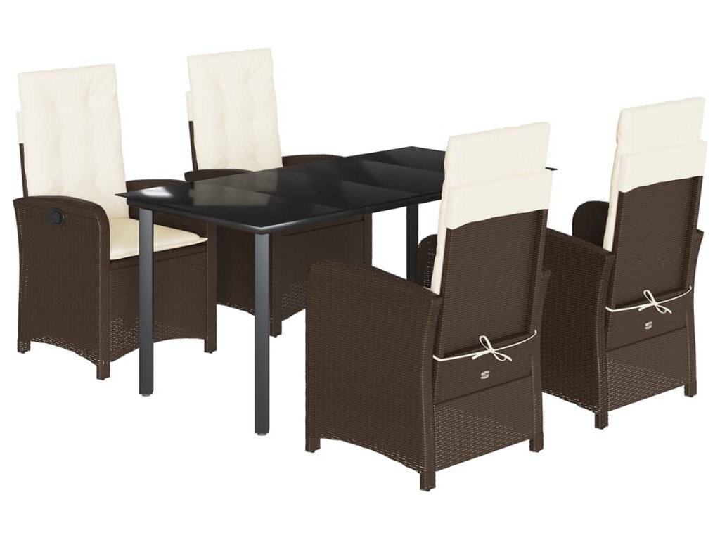 5dílný zahradní jídelní set s poduškami hnědý polyratan [3212344]