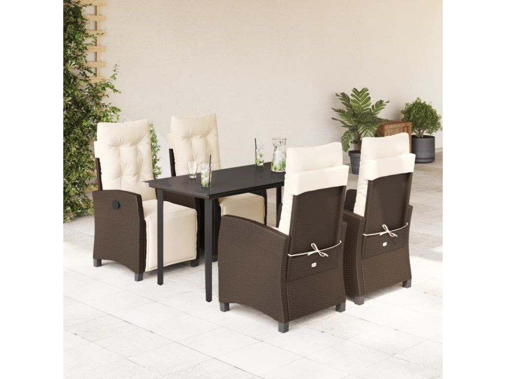 5dílný zahradní jídelní set s poduškami hnědý polyratan [3212983]