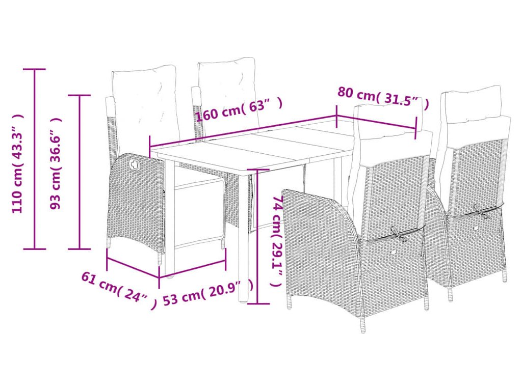 Tento zahradní jídelní set je skvělou volbou pro stolování pod širým nebem nebo jen tak pro odpočívání na zahradě, dvorku či terase.