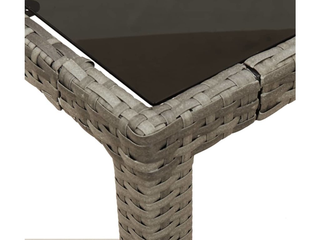 - Materiál: PE ratan, práškově lakovaná ocel, tvrzené sklo