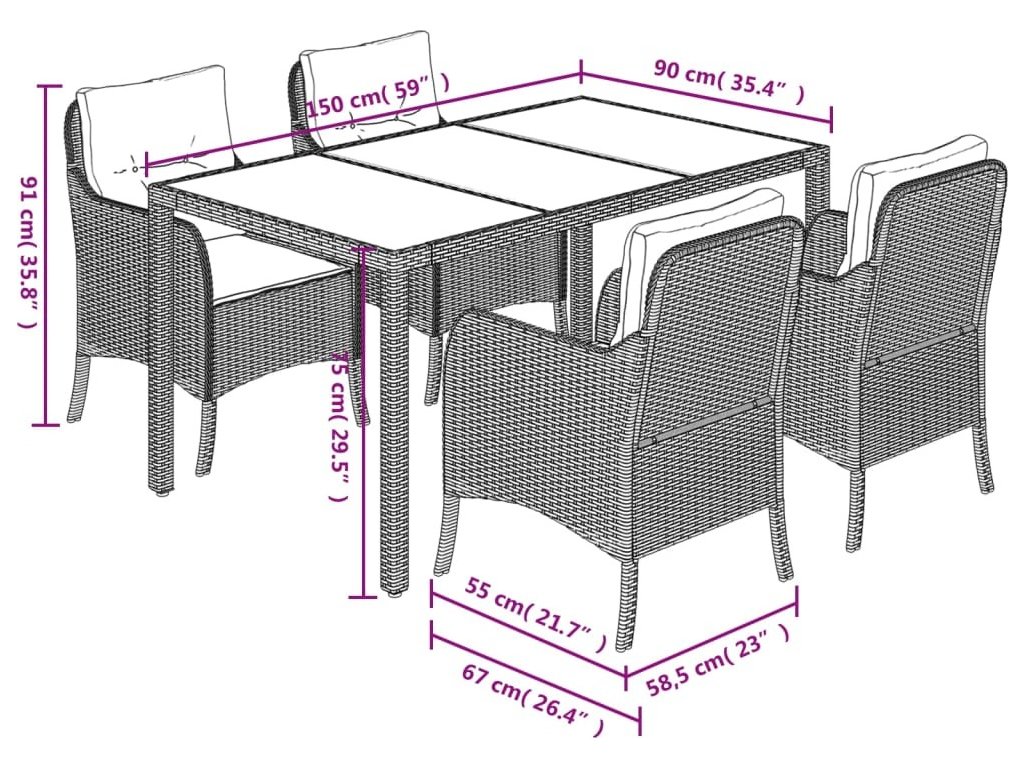- Skleněná deska stolu: Deska venkovního stolu je zhotovena ze silného a odolného tvrzeného skla, takže ji snadno očistíte vlhkým hadříkem a zároveň do vašeho venkovního prostoru vnese nádech elegance.
