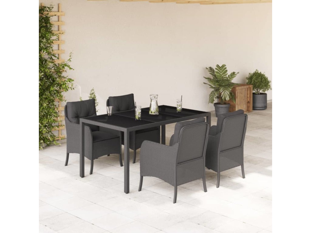 5dílný zahradní jídelní set s poduškami polyratan [3211856]