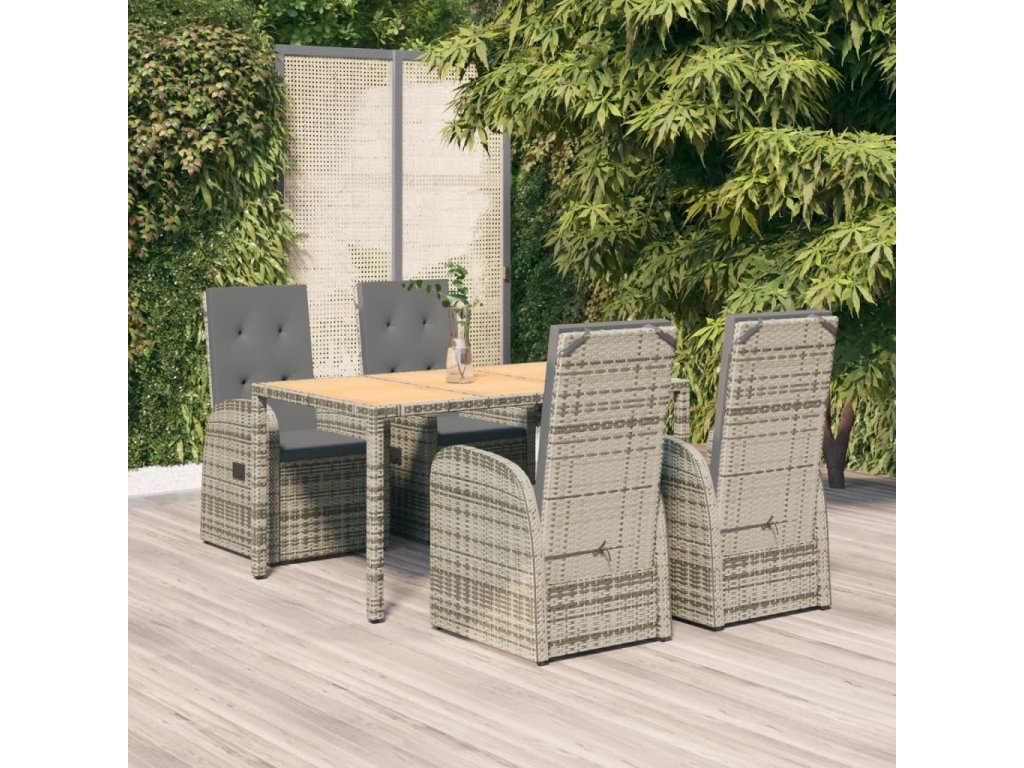 5dílný zahradní jídelní set s poduškami šedý polyratan [3157585]