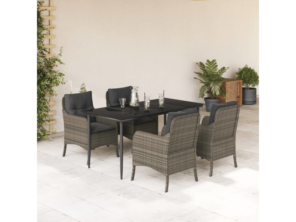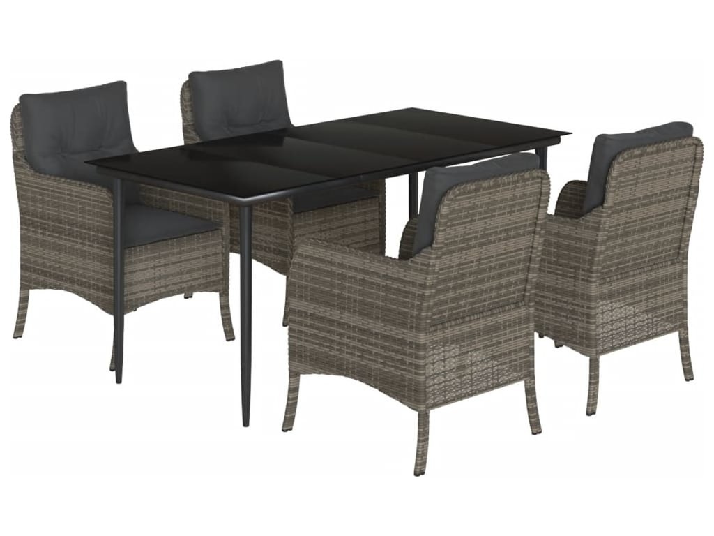 5dílný zahradní jídelní set s poduškami šedý polyratan [3211951]
